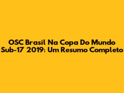 OSC Brasil Na Copa Do Mundo Sub-17 2019: Um Resumo Completo