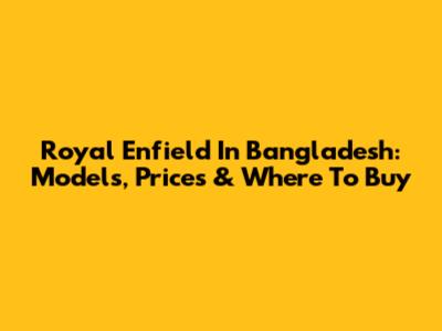 Royal Enfield In Bangladesh: Models, Prices & Where To Buy
