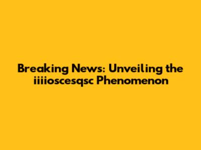 Breaking News: Unveiling The Iiiioscesqsc Phenomenon