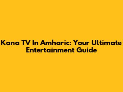 Kana TV In Amharic: Your Ultimate Entertainment Guide