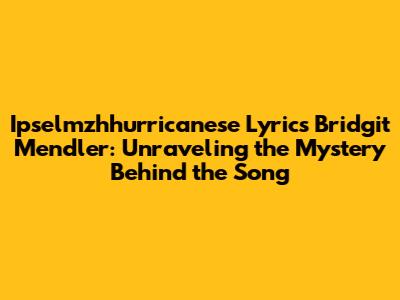 Hey guys! Ever stumbled upon a song title that just makes you go, "What on earth does that even mean?" Well, "Ipselmzhhurricanese" by the incredibly talented Bridgit Mendler is definitely one of those! This deep dive will unpack everything about this quirky title, exploring the song's themes, Bridgit's inspiration, and how the heck you even pronounce that thing. So, buckle up, because we're about to go on a lyrical adventure!