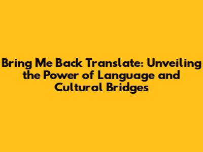 How to Get the Most Out of Bring Me Back Translate
