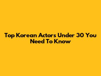 Top Korean Actors Under 30 You Need To Know