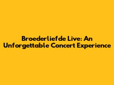Why Broederliefde Concerts are a Must-See