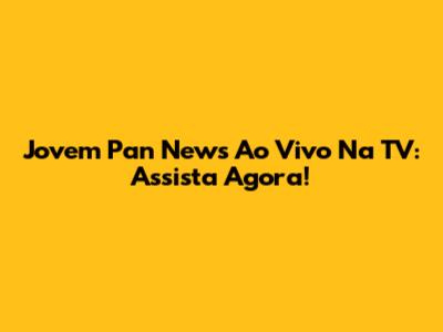 Jovem Pan News Ao Vivo Na TV: Assista Agora!