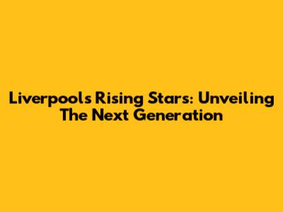 Liverpool's Rising Stars: Unveiling The Next Generation