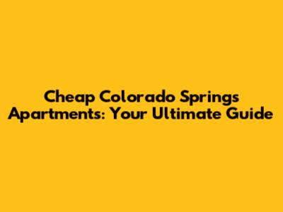 Cheap Colorado Springs Apartments: Your Ultimate Guide