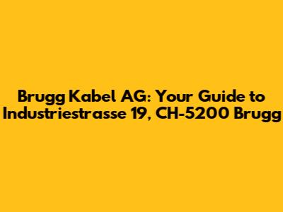 Alright guys, let's dive into everything you need to know about Brugg Kabel AG, located at Industriestrasse 19, CH-5200 Brugg. This isn't just some random address; it's a hub of innovation and quality in the world of cable solutions. Whether you're a seasoned professional, a curious student, or just someone trying to figure out where this place is, this guide is for you. We'll break down the significance of Brugg Kabel AG, its location, and why it matters in the grand scheme of things. Trust me, by the end of this, you'll be practically an expert!
