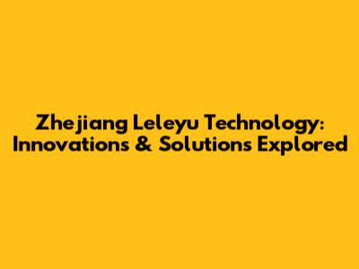 Zhejiang Leleyu Technology: Innovations & Solutions Explored
