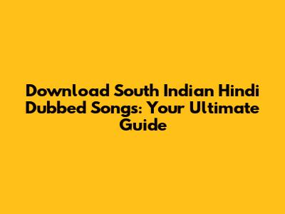 Download South Indian Hindi Dubbed Songs: Your Ultimate Guide