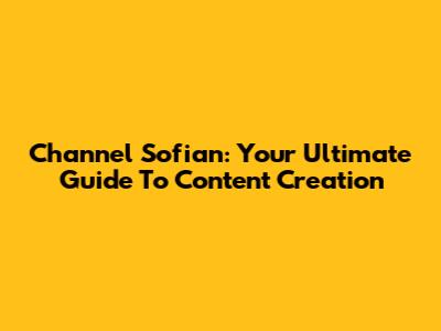 Channel Sofian: Your Ultimate Guide To Content Creation
