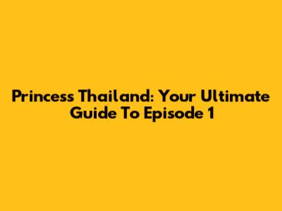 Princess Thailand: Your Ultimate Guide To Episode 1