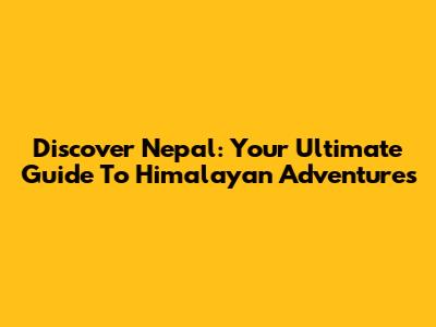 Discover Nepal: Your Ultimate Guide To Himalayan Adventures