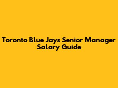 Toronto Blue Jays Senior Manager Salary Guide