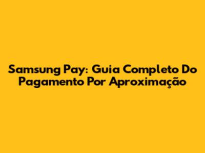 Samsung Pay: Guia Completo Do Pagamento Por Aproximação