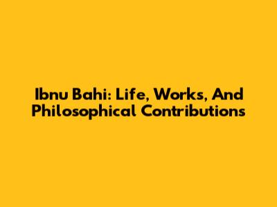 Ibnu Bahi: Life, Works, And Philosophical Contributions