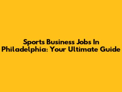 Sports Business Jobs In Philadelphia: Your Ultimate Guide