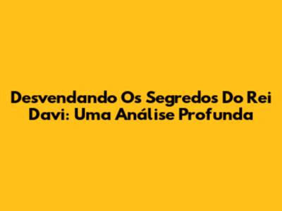 Desvendando Os Segredos Do Rei Davi: Uma Análise Profunda