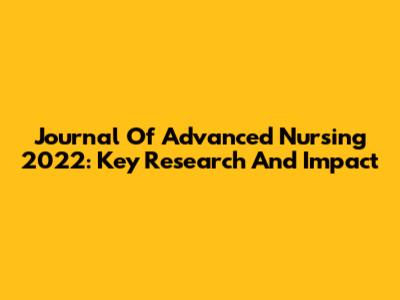 Journal Of Advanced Nursing 2022: Key Research And Impact