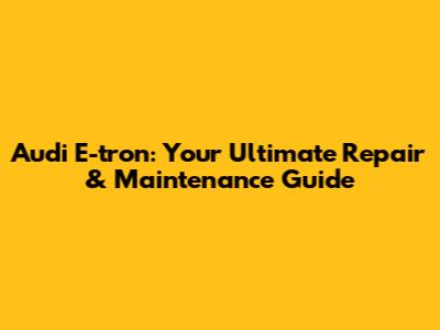 Audi E-tron: Your Ultimate Repair & Maintenance Guide