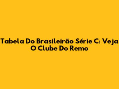Tabela Do Brasileirão Série C: Veja O Clube Do Remo