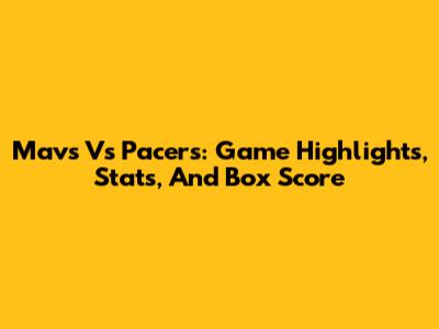 Mavs Vs Pacers: Game Highlights, Stats, And Box Score