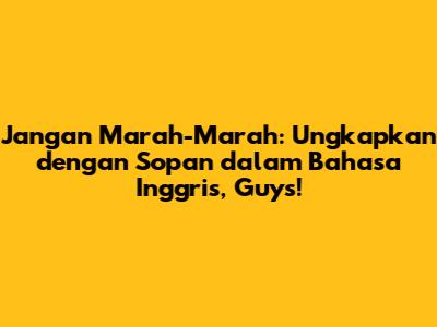 Oke, guys, pernah nggak sih kalian lagi ngobrol santai, eh tiba-tiba ada yang ngomel atau malah kalian sendiri yang kepancing emosi? Nah, seringkali kita pengen banget ngomong, "Jangan marah-marah dong!" tapi bingung gimana cara ngomongnya dalam Bahasa Inggris yang sopan dan nggak bikin suasana makin runyam. Tenang, kalian datang ke tempat yang tepat! Artikel ini bakal ngebahas tuntas gimana caranya ngomong "jangan marah-marah" dalam Bahasa Inggris, mulai dari yang paling kasual sampai yang lebih formal, biar kalian bisa ngungkapin diri tanpa bikin orang lain tersinggung. Siap? Yuk, kita mulai petualangan kosakata Bahasa Inggris kita!