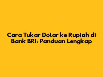 Tukar uang dolar ke rupiah di BRI? Guys, jika kalian memiliki mata uang asing, khususnya Dolar Amerika Serikat (USD), dan ingin menukarnya ke Rupiah Indonesia (IDR), Bank Rakyat Indonesia (BRI) bisa menjadi salah satu pilihan utama. BRI, sebagai salah satu bank terbesar di Indonesia, menawarkan layanan penukaran mata uang asing yang mudah diakses. Artikel ini akan membahas secara mendalam tentang cara tukar uang dolar ke rupiah di BRI, mulai dari persyaratan, prosedur, hingga tips yang berguna agar proses penukaran berjalan lancar. Mari kita mulai!