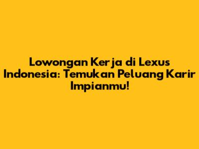 Lowongan kerja di Lexus Indonesia – Siapa yang tidak tertarik dengan merek mobil mewah sekelas Lexus? Bagi kalian yang sedang mencari pekerjaan dan memiliki minat di dunia otomotif, khususnya di segmen premium, lowongan kerja di Lexus Indonesia bisa menjadi pilihan yang sangat menarik. Lexus, sebagai merek yang identik dengan kemewahan, kualitas, dan inovasi, menawarkan berbagai peluang karir yang menjanjikan. Artikel ini akan membahas secara mendalam mengenai lowongan kerja di Lexus Indonesia, mulai dari jenis pekerjaan yang tersedia, persyaratan yang umumnya dibutuhkan, hingga tips untuk meningkatkan peluang diterima.