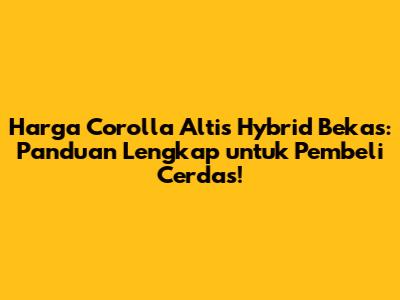 Hai, guys! Kalian sedang mempertimbangkan untuk membeli Toyota Corolla Altis Hybrid bekas, ya? Keputusan yang bagus! Mobil ini memang dikenal irit bahan bakar, ramah lingkungan, dan punya performa yang oke. Tapi, sebelum kalian memutuskan untuk membelinya, tentu saja kalian perlu tahu harga Corolla Altis Hybrid bekas di pasaran saat ini. Nah, di artikel ini, kita akan membahas secara lengkap tentang harga mobil bekas ini, faktor-faktor yang mempengaruhinya, serta tips-tips penting agar kalian bisa mendapatkan mobil impian dengan harga yang sesuai budget. Yuk, simak ulasannya!
