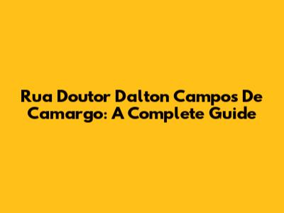 Rua Doutor Dalton Campos De Camargo: A Complete Guide