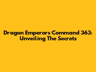 Dragon Emperor's Command 363: Unveiling The Secrets