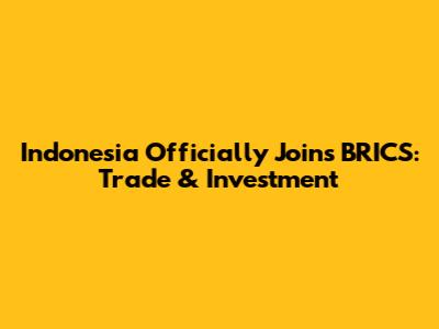 Indonesia Officially Joins BRICS: Trade & Investment