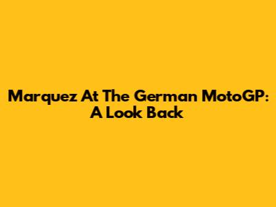 Marquez At The German MotoGP: A Look Back