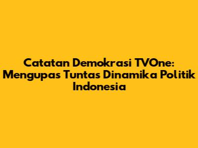 Catatan Demokrasi TVOne adalah program yang menyajikan liputan mendalam mengenai berbagai aspek politik di Indonesia. Dari pemilihan umum hingga debat politik, dari dinamika partai politik hingga opini publik, semuanya disajikan secara komprehensif. Program ini dikenal karena menyajikan analisis yang tajam dan pandangan dari berbagai sudut, memungkinkan pemirsa untuk mendapatkan pemahaman yang holistik. Para jurnalis dan analis politik yang terlibat dalam program ini biasanya memiliki pengalaman yang luas dan keahlian yang mendalam di bidangnya, sehingga mampu memberikan ulasan yang informatif dan relevan. Bagi kita, para pengamat politik, acara ini adalah sumber informasi yang tak ternilai harganya.