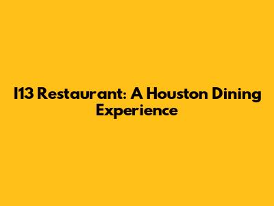 I13 Restaurant: A Houston Dining Experience
