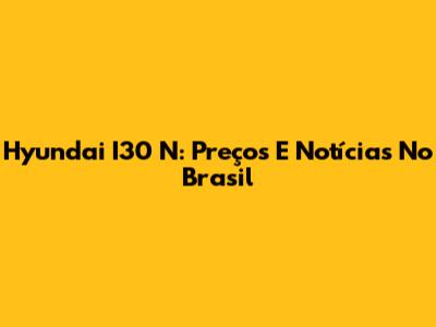 Hyundai I30 N: Preços E Notícias No Brasil