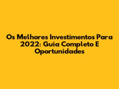 Os Melhores Investimentos Para 2022: Guia Completo E Oportunidades