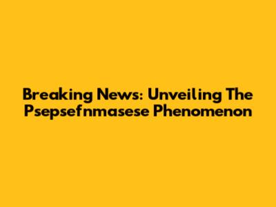 Breaking News: Unveiling The Psepsefnmasese Phenomenon