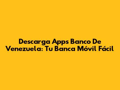 Descarga Apps Banco De Venezuela: Tu Banca Móvil Fácil
