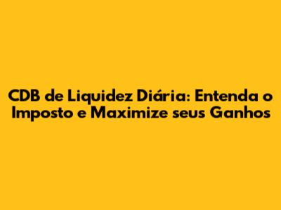 Mas, como tudo na vida, essa praticidade tem suas nuances. Uma delas é a questão do imposto, que pode impactar diretamente a rentabilidade do seu investimento. Saber como o imposto funciona, como ele é calculado e quais são as alíquotas é essencial para que você não seja pego de surpresa e consiga planejar suas finanças de forma eficiente. O imposto de renda sobre o CDB de liquidez diária segue a tabela regressiva da renda fixa, o que significa que, quanto mais tempo o dinheiro fica investido, menor será a alíquota cobrada. Vamos detalhar isso mais adiante.