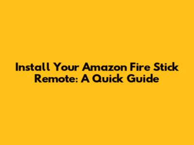 Install Your Amazon Fire Stick Remote: A Quick Guide
