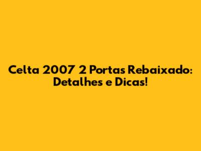 Celta 2007 2 Portas Rebaixado: Detalhes E Dicas!