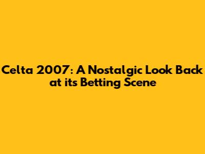 Hey guys! Let's take a trip down memory lane and revisit the Celta de Vigo football team back in 2007. For those who were around back then, you might recall the thrill and excitement surrounding their games, and of course, the betting scene that came along with it. So, buckle up as we dive deep into the world of Celta in 2007, exploring their performance, key players, and how fans engaged with the team through betting.