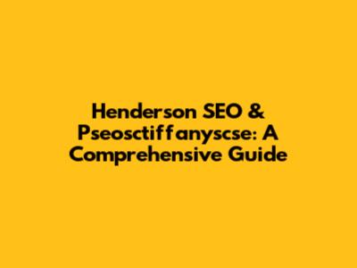 Henderson SEO & Pseosctiffanyscse: A Comprehensive Guide