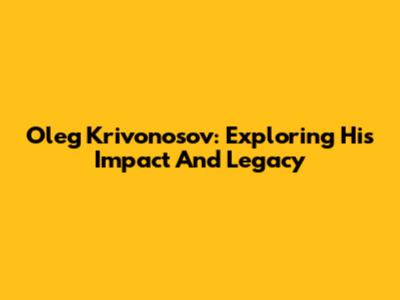 Oleg Krivonosov: Exploring His Impact And Legacy