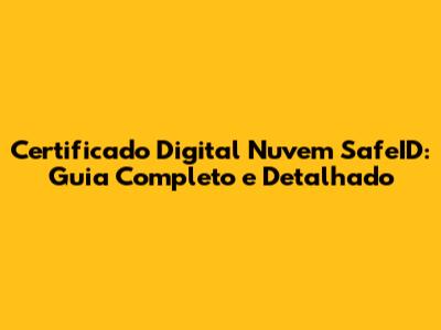 O Que é Certificado Digital Nuvem SafeID?
