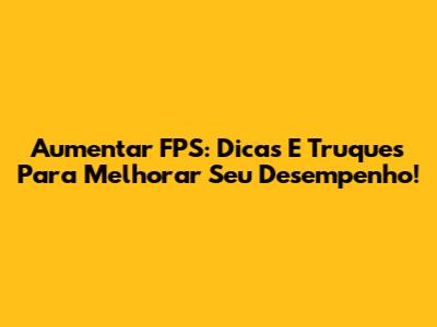 Aumentar FPS: Dicas E Truques Para Melhorar Seu Desempenho!