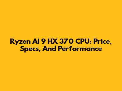 Ryzen AI 9 HX 370 CPU: Price, Specs, And Performance