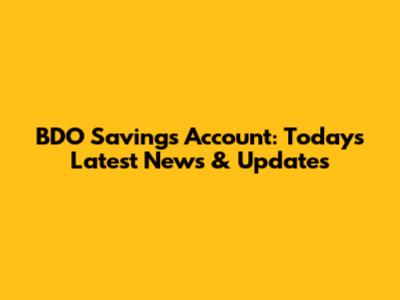 BDO Savings Account: Today's Latest News & Updates